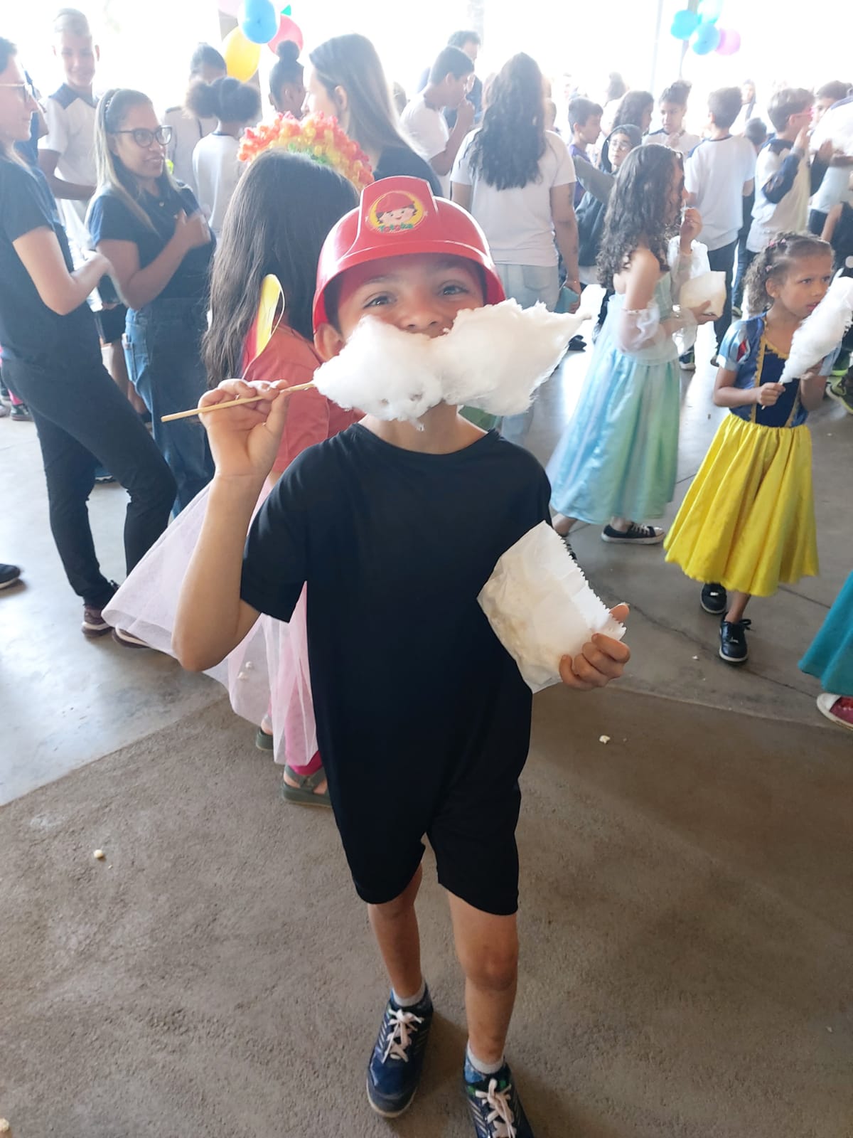 Ah... e ainda foi oferecido algodão doce, pipoca e um almoço delicioso com direito a bolo e sorvete de sobremesa em um clima festivo e harmonioso.
